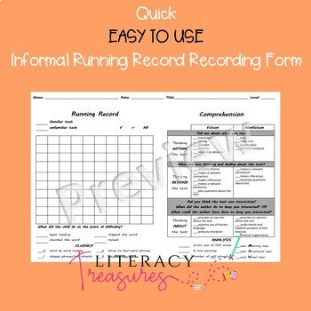 Informal Running Record and Comprehension Check--EASY TO USE 100 Word Box Form